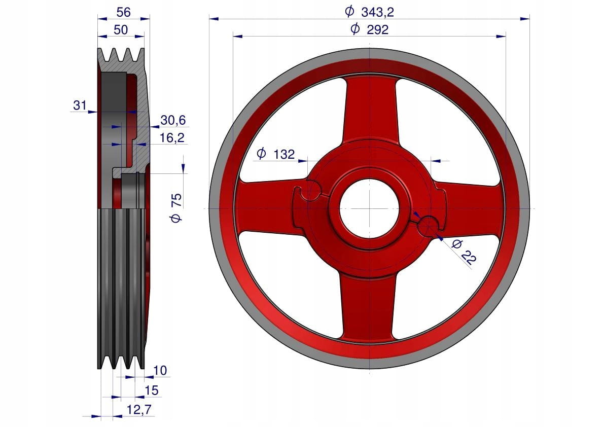 Koło pasowe duże zastosowanie Kosiarka rotacyjna polska 1.35 Waryński