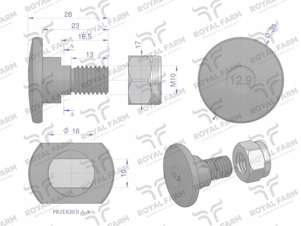 Śruba nożyka kpl. M10x28 zastosowanie Kuhn ROYAL FARM 10szt RF-56210100